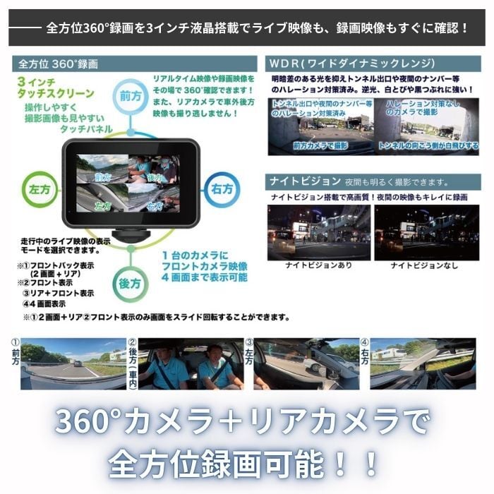 ご使用いただいている皆様に大変満足して頂いている360°超広角カメラドライブレコーダーです。
