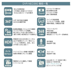 WATEX 360°超広角視野カメラドライブレコーダー DVR-NEO360 ☆日本製・メーカー保証3年☆