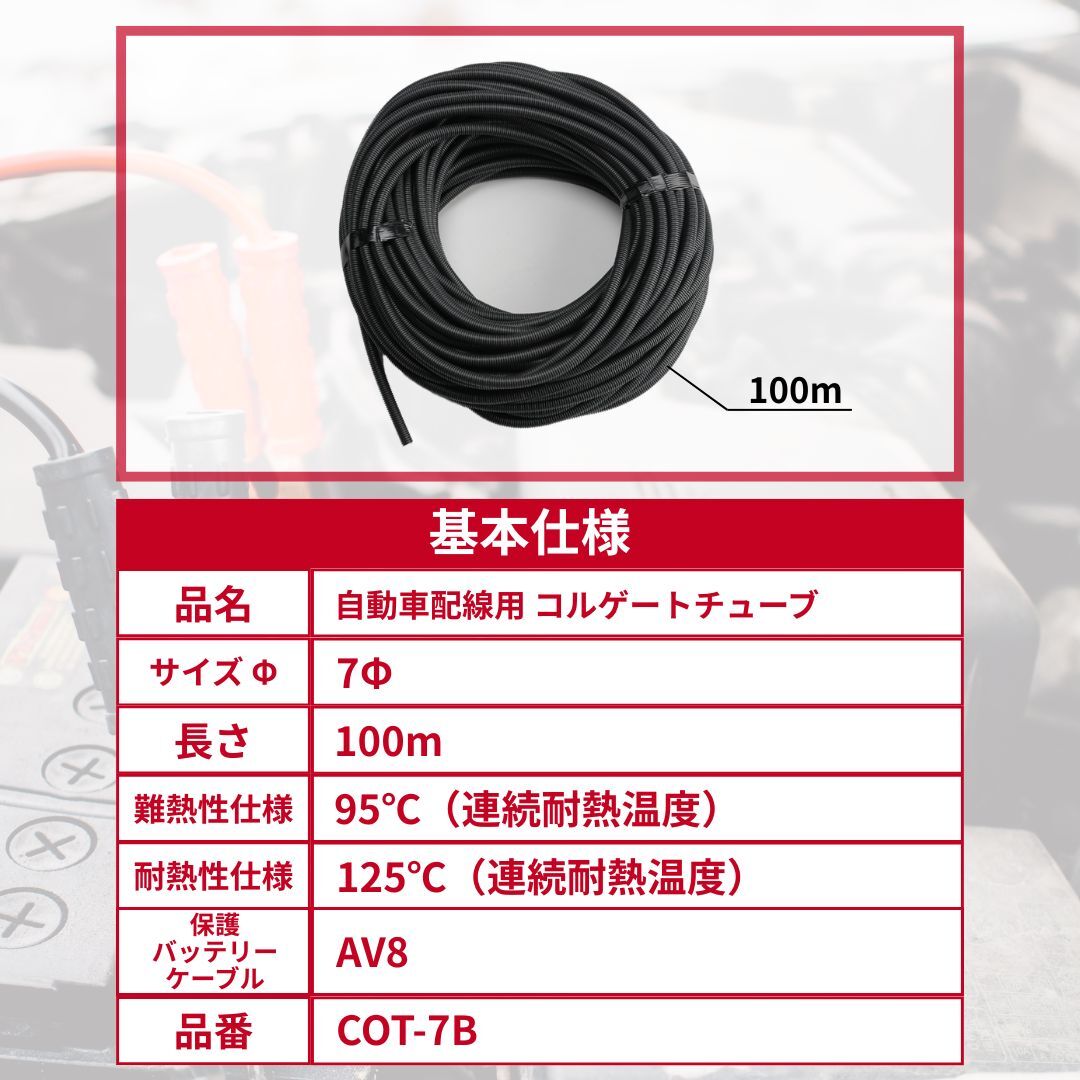 【SEIWA 高品質 コルゲートチューブ】自動車用 7Φ 100m 1個 黒色【COT-7B】